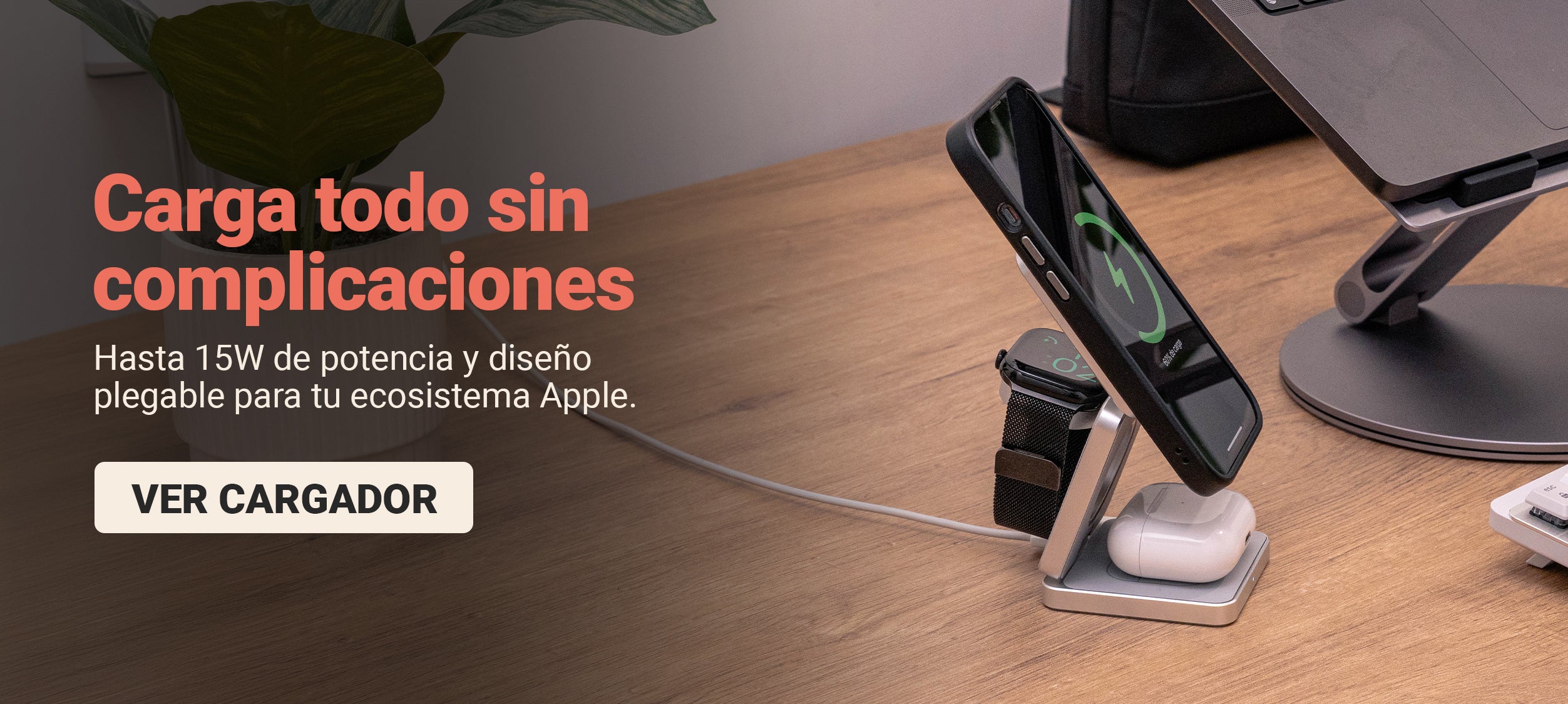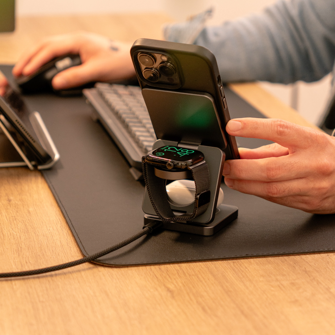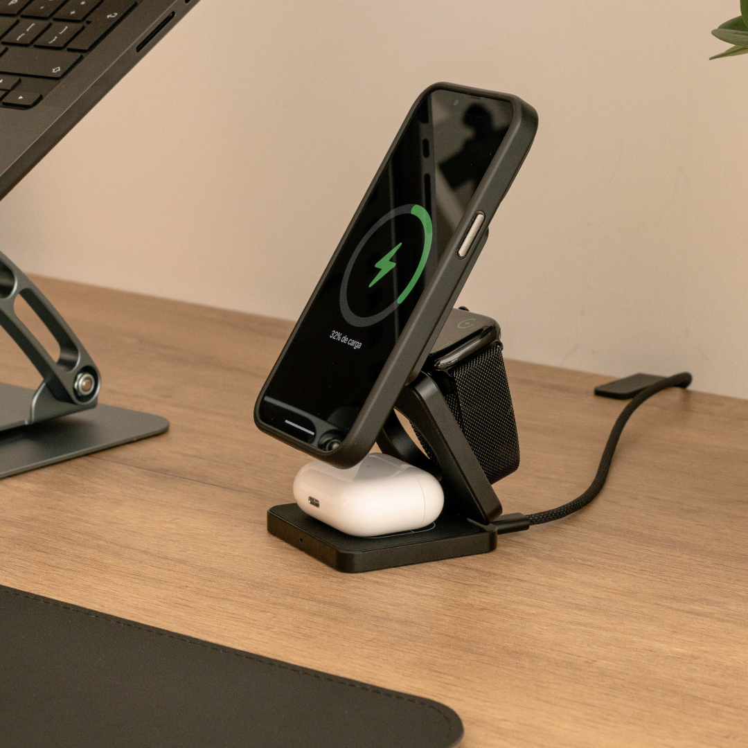 Cargador Inalámbrico 3 en 1 de 15W Plegable y Magnético de Aluminio