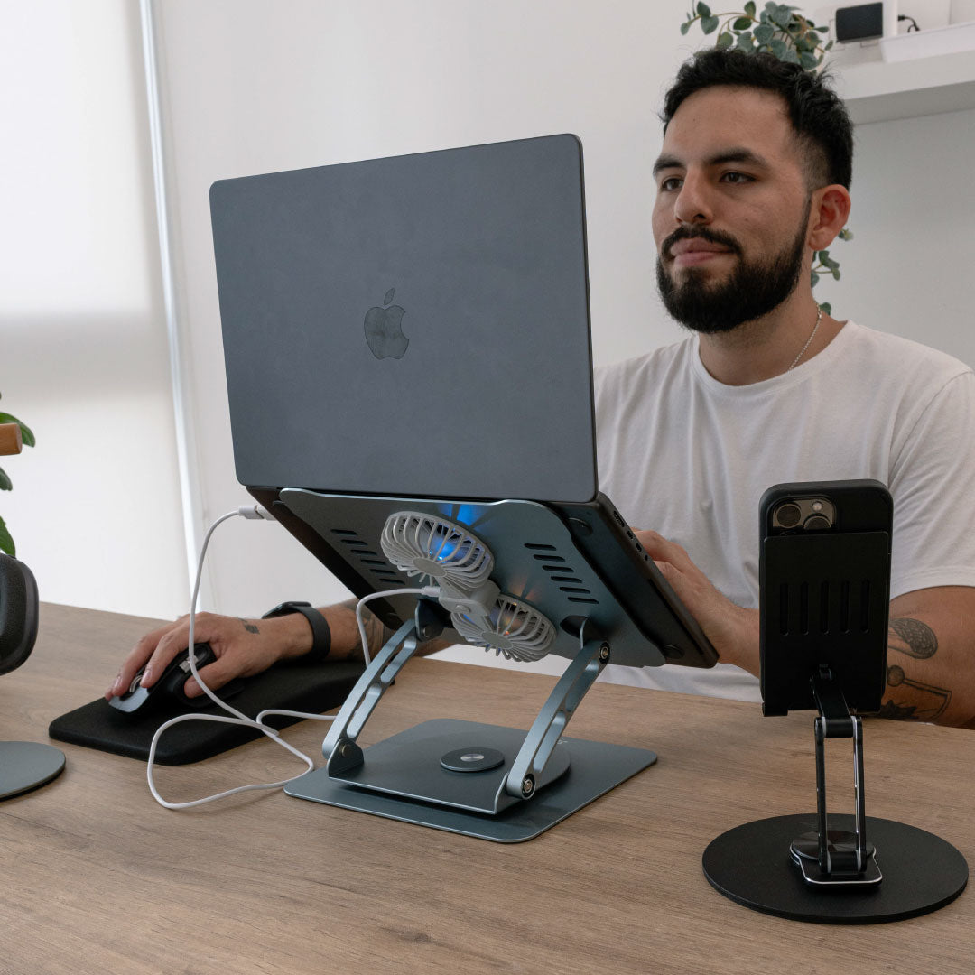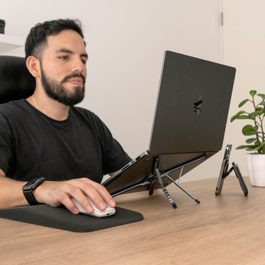 Los soportes para laptop, tablet y celular ayudan a elevar la pantalla a una mejor altura y mejorar la comodidad durante clases, trabajo o estudio.