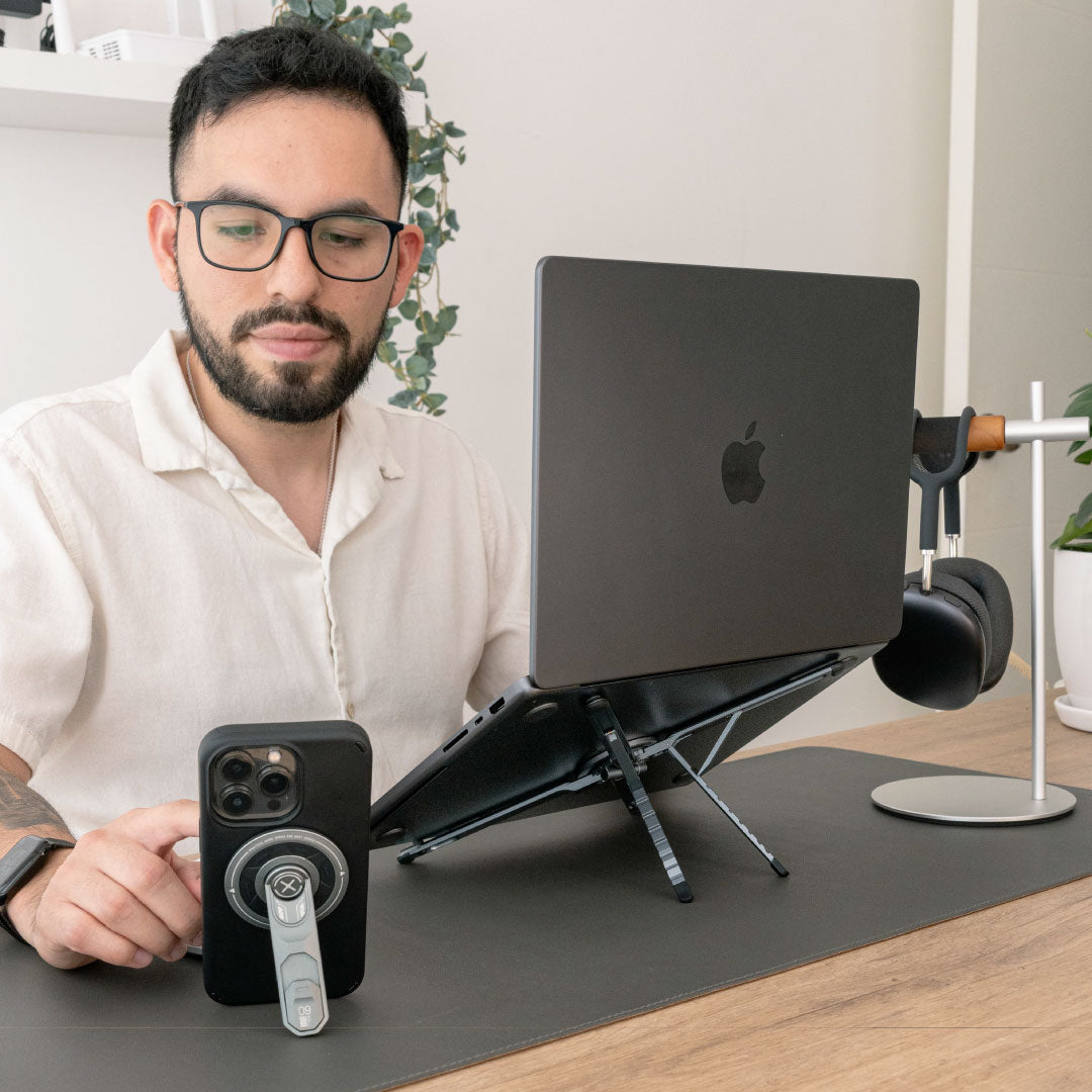 Si te mueves entre universidad, biblioteca o cafetería, te recomendamos accesorios compactos y fáciles de llevar como soportes plegables, power banks y opciones magsafe para acompañarte durante el día.