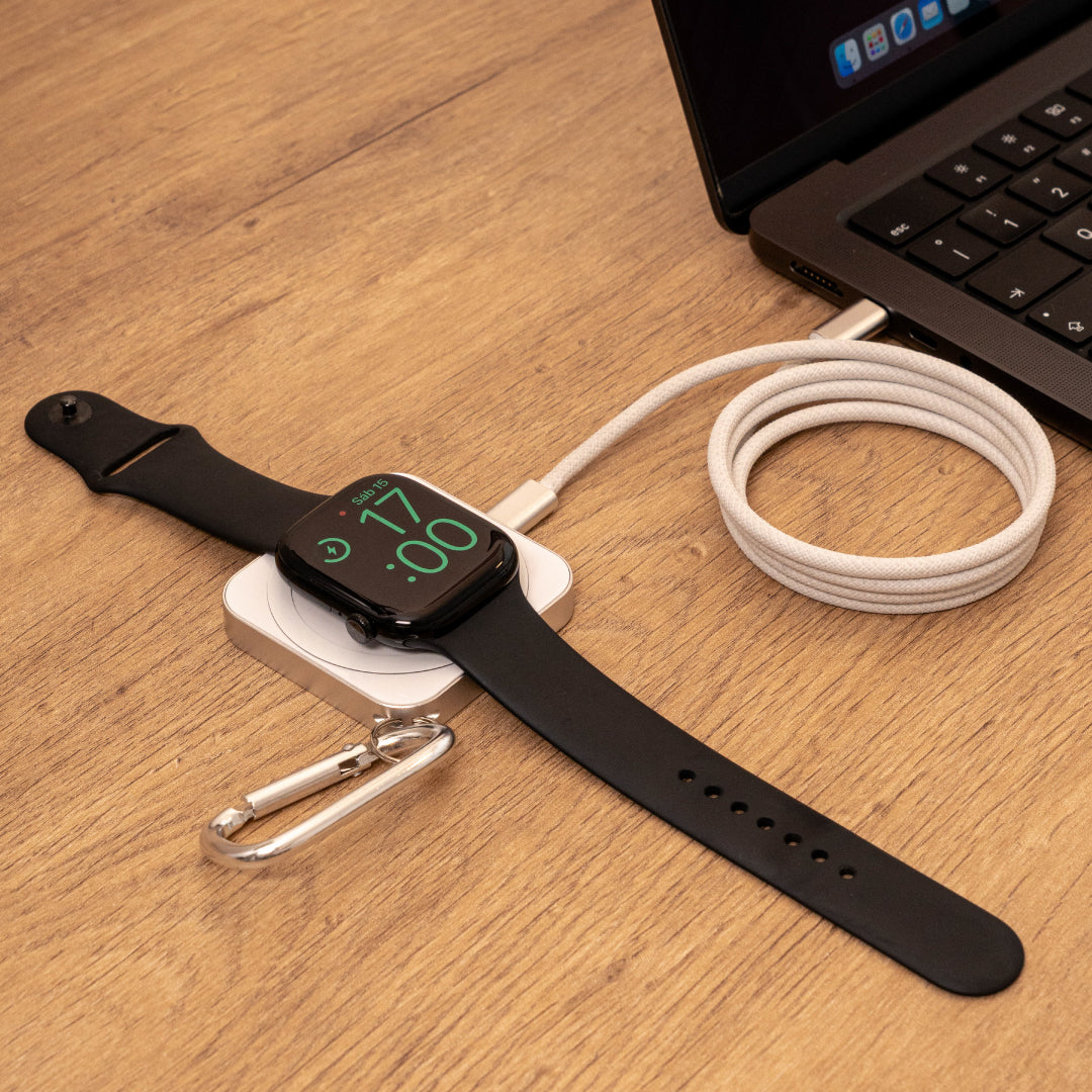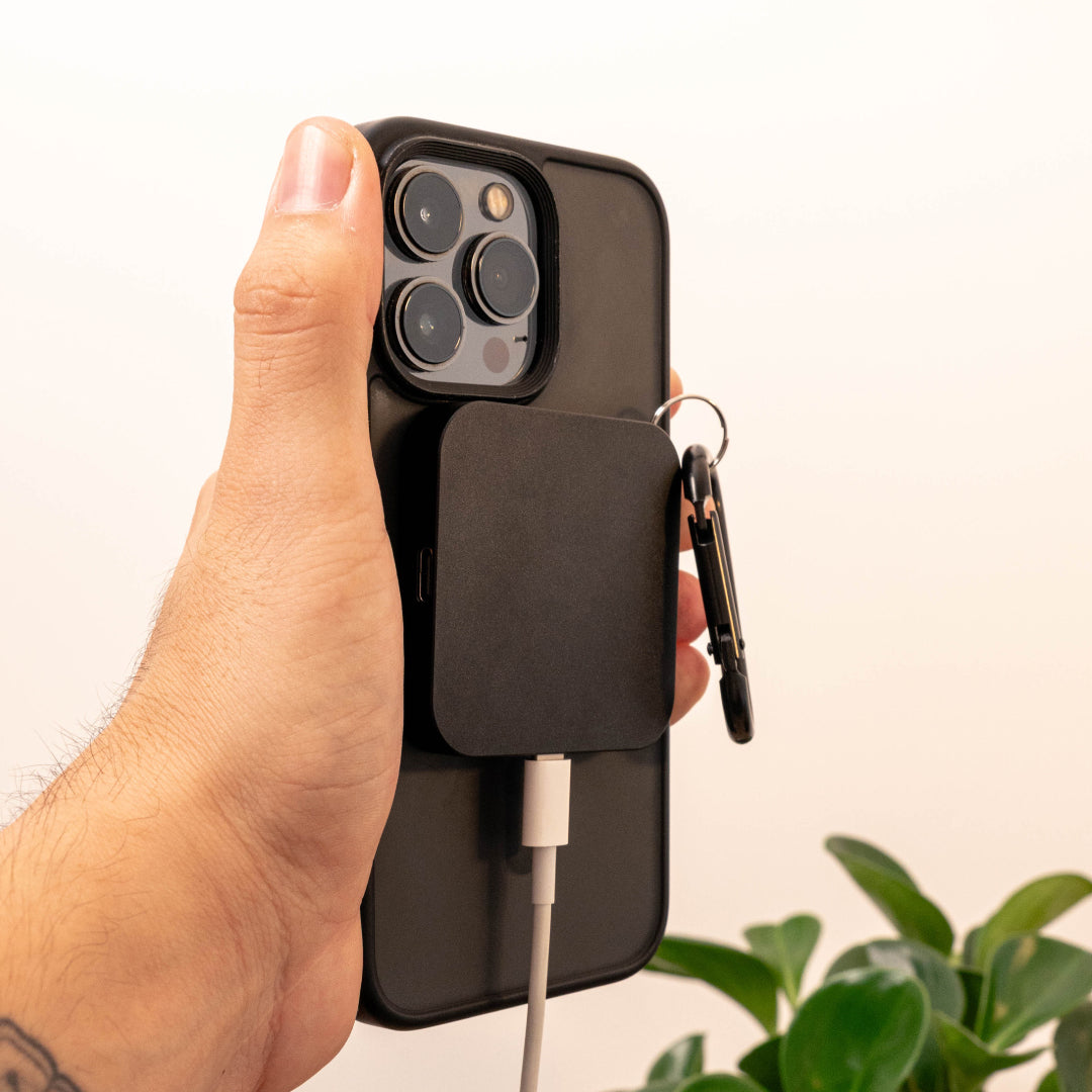 A diferencia de estaciones más grandes, este modelo está hecho para quienes necesitan cargar uno a uno sus dispositivos (iPhone, Apple Watch o AirPods), sin cargar con múltiples cables ni accesorios voluminosos. Su tamaño ultradelgado, mosquetón integrado y entradas Lightning/USB-C lo convierten en el cargador definitivo para viajes, oficina o tu día a día.