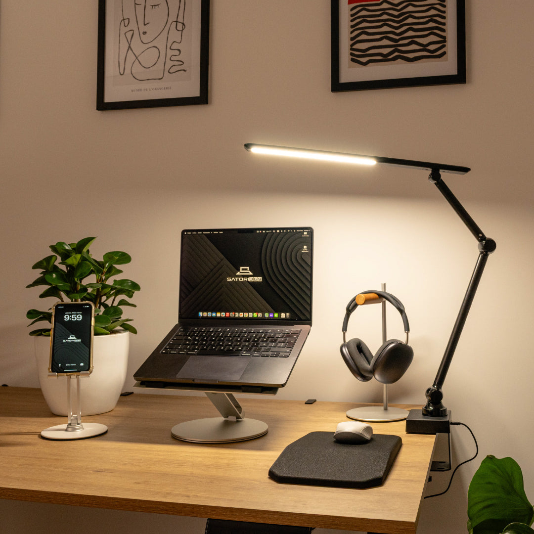 Ilumina tu escritorio con elegancia y funcionalidad. Esta lámpara LED recargable ofrece luz regulable, ajuste de temperatura de color y un diseño con clip que se adapta a cualquier espacio de trabajo. Control táctil para una experiencia moderna y sin interrupciones.