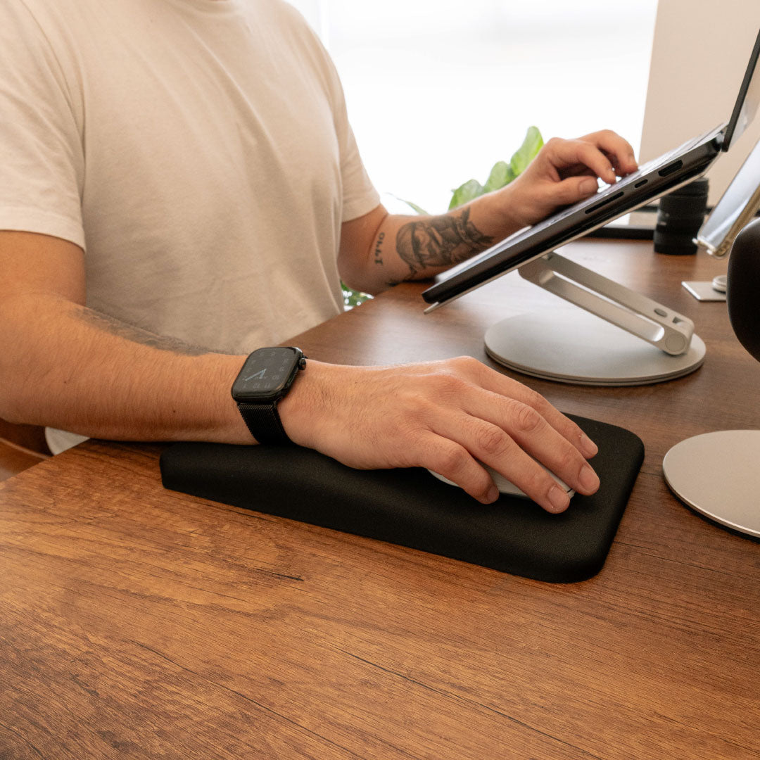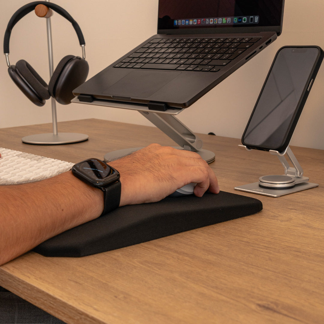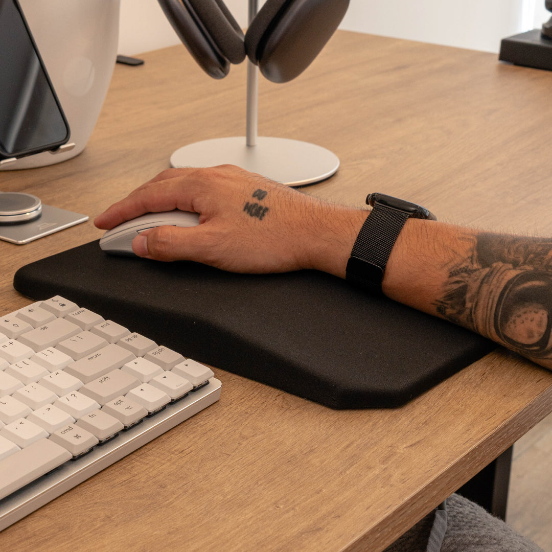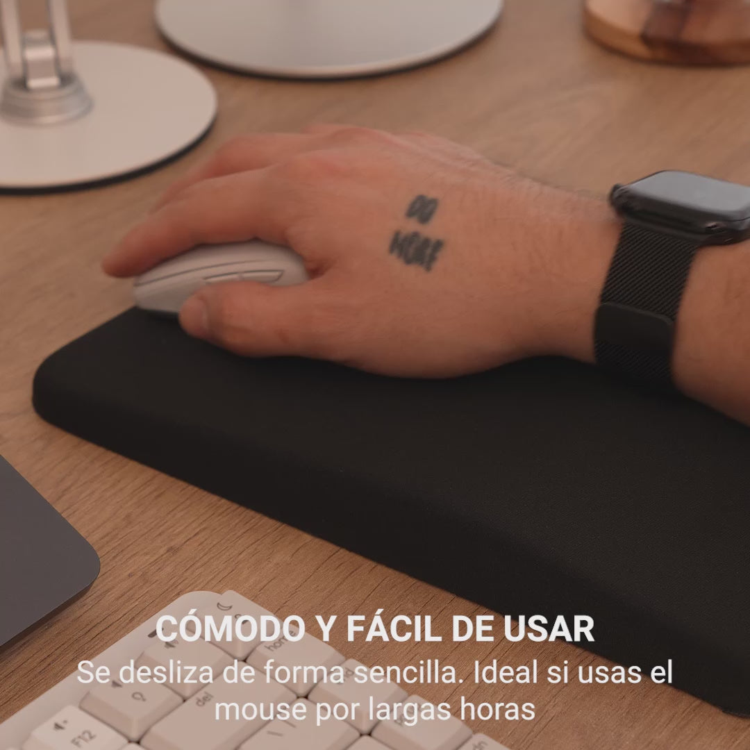 Gracias a su inclinación ergonómica de 8° y el soporte de memory foam, reduce la presión acumulada en la muñeca, previniendo molestias y lesiones como el túnel carpiano. Compacto, resistente y duradero, es un accesorio ideal para oficinas, estudios, coworkings o setups gamer.