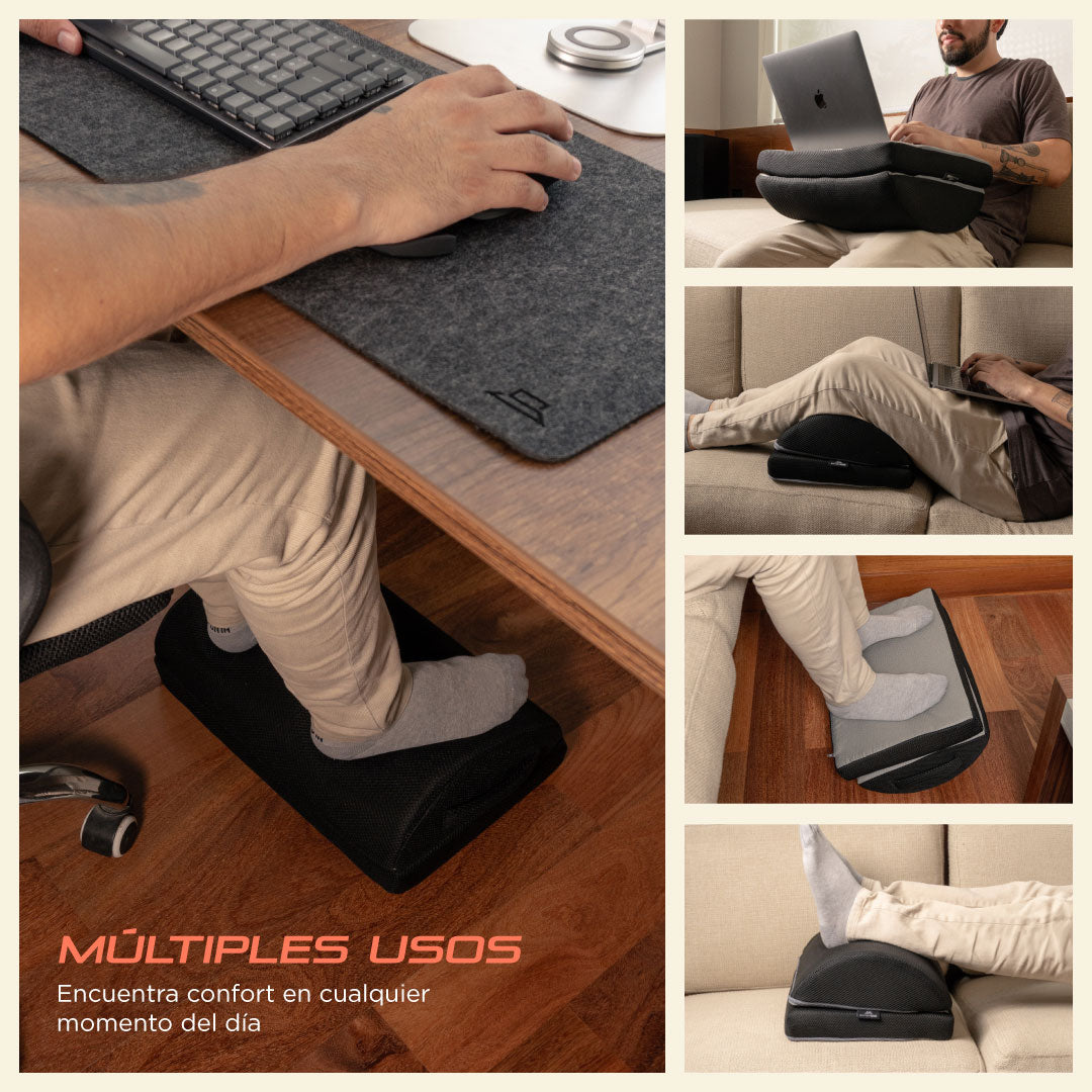 - Apoyo ergonómico para piernas y columna