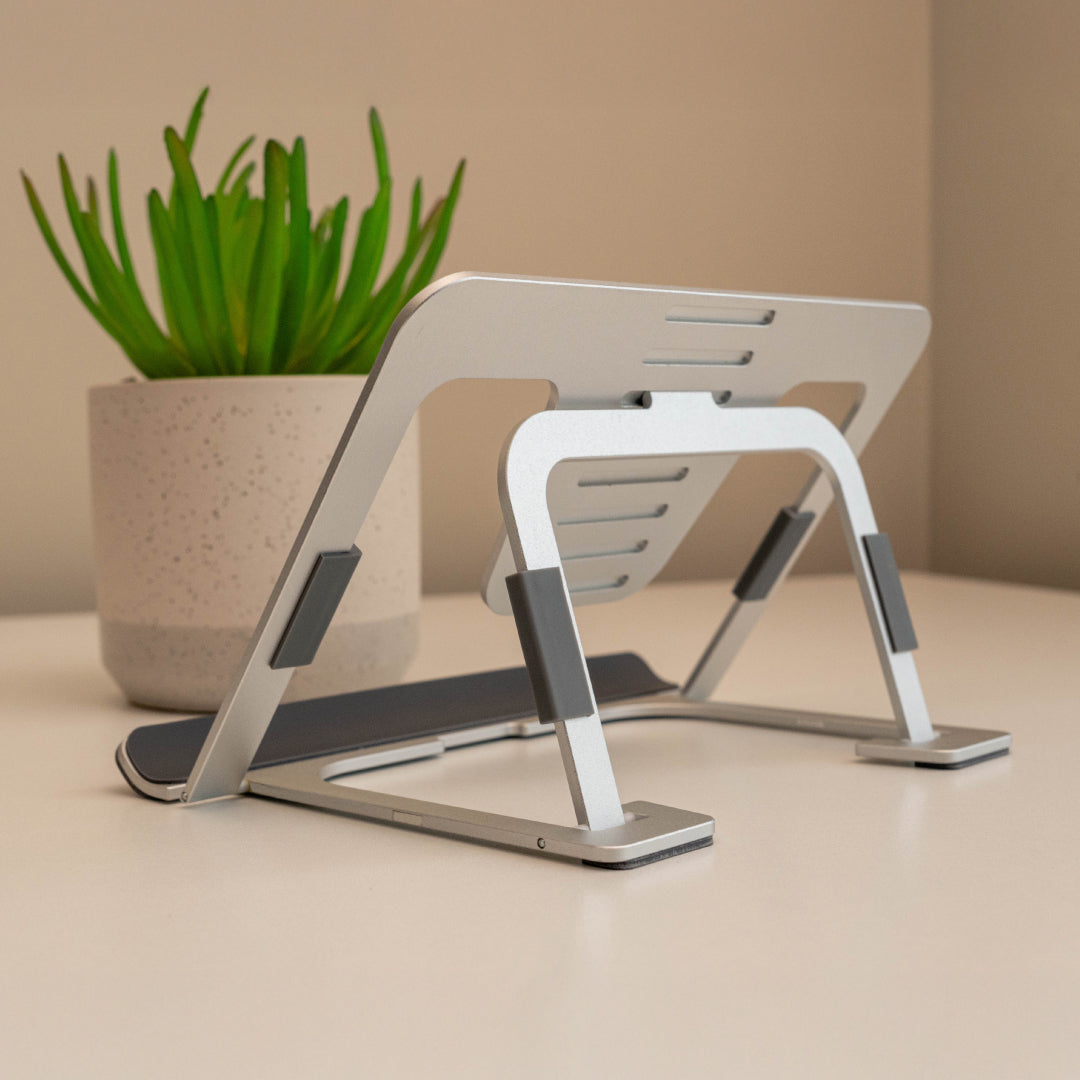Aleación de aluminio de alta calidad para estabilidad y durabilidad. Almohadillas de silicona para evitar deslizamientos y proteger tu dispositivo.