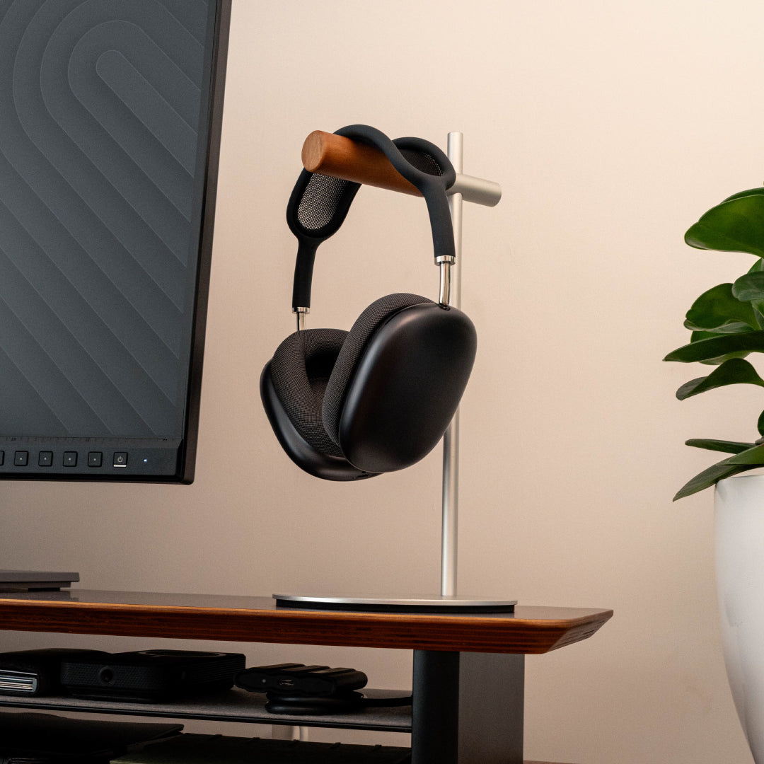 Eleva tus headphones a unos 26cm para elevar tu setup y mantener el orden. Textura suave al tacto, combinando modernidad y calidez natural.